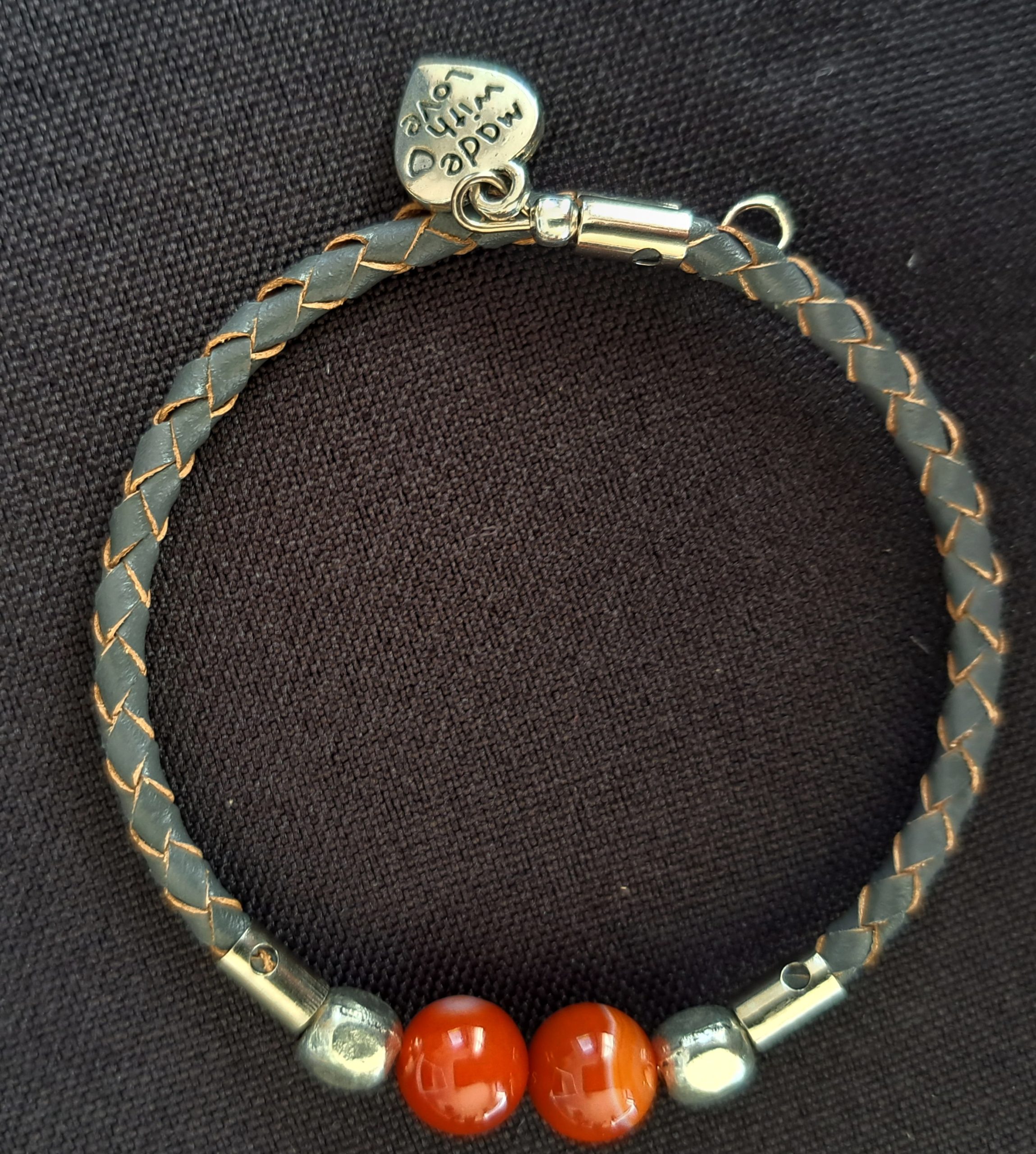 Bracelet/Bangle with leather band and Carnelian semi-precious stones