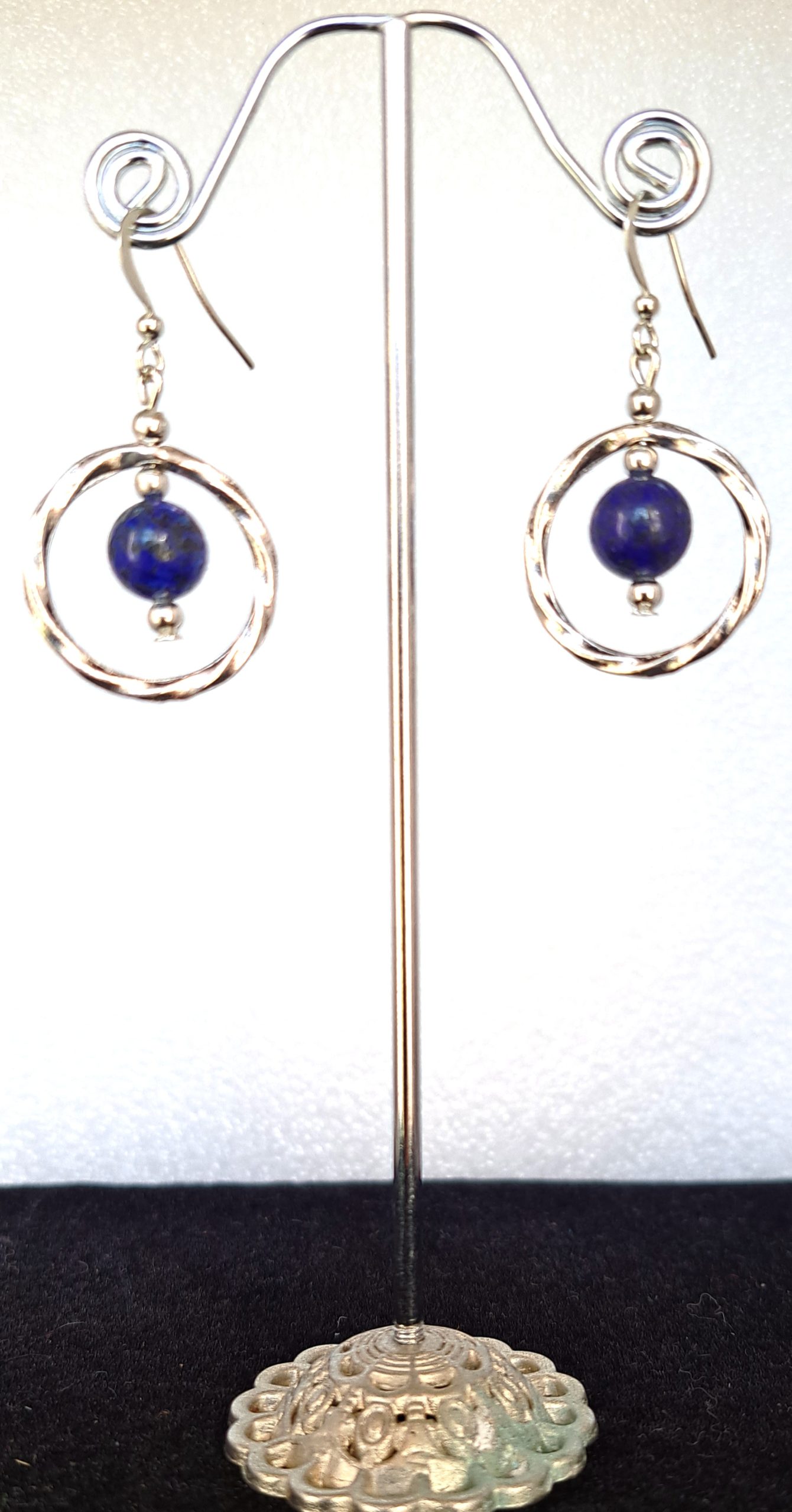 Lapis Lazuli stone earrings, metal finish with nickel-free/hyperallergic hooks