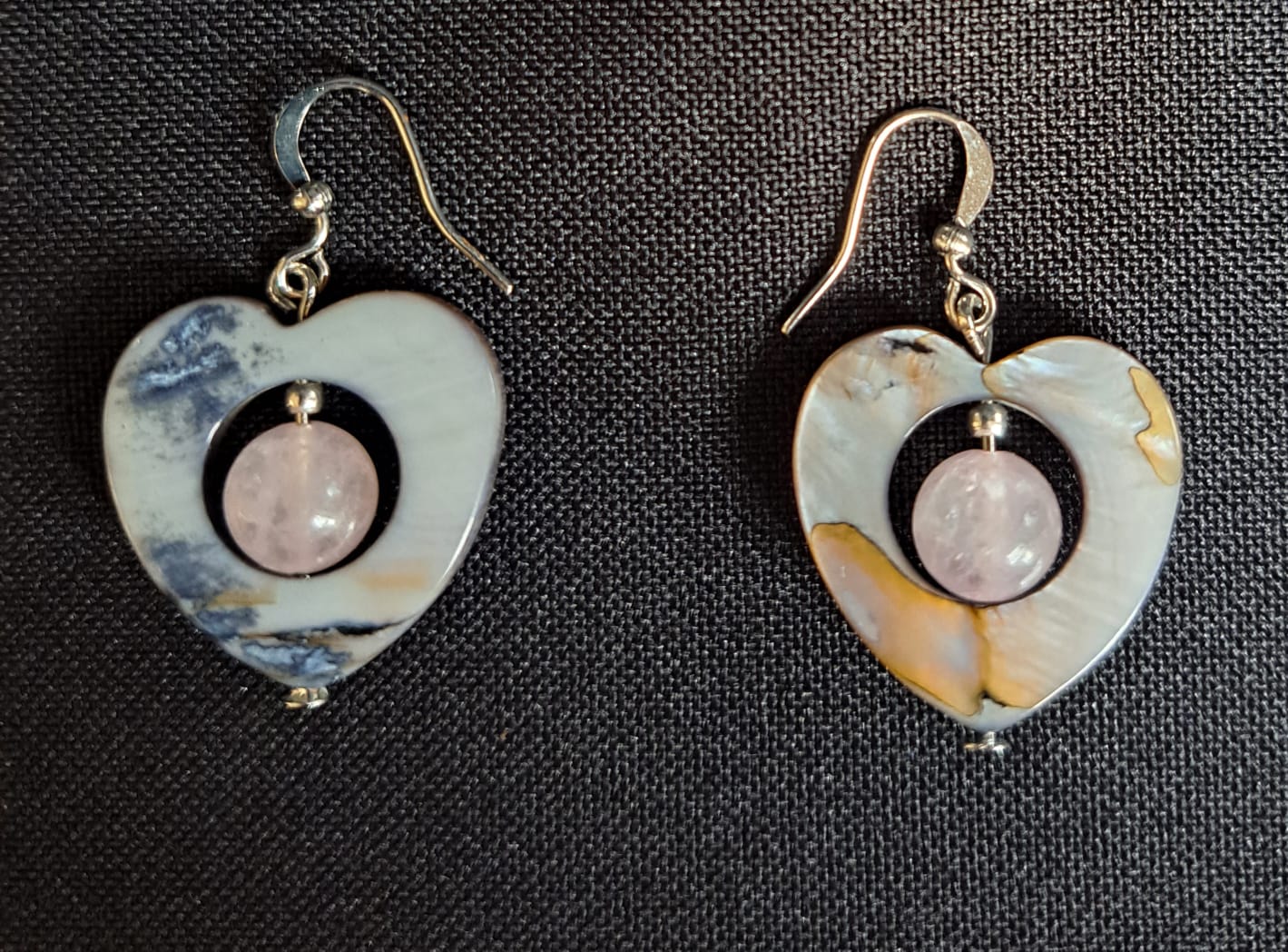 Semi-precious Rose Quarts earrings with coloured Shell